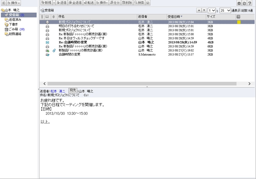 | 件名 | メールの件名を表示します。 | ||||||||||